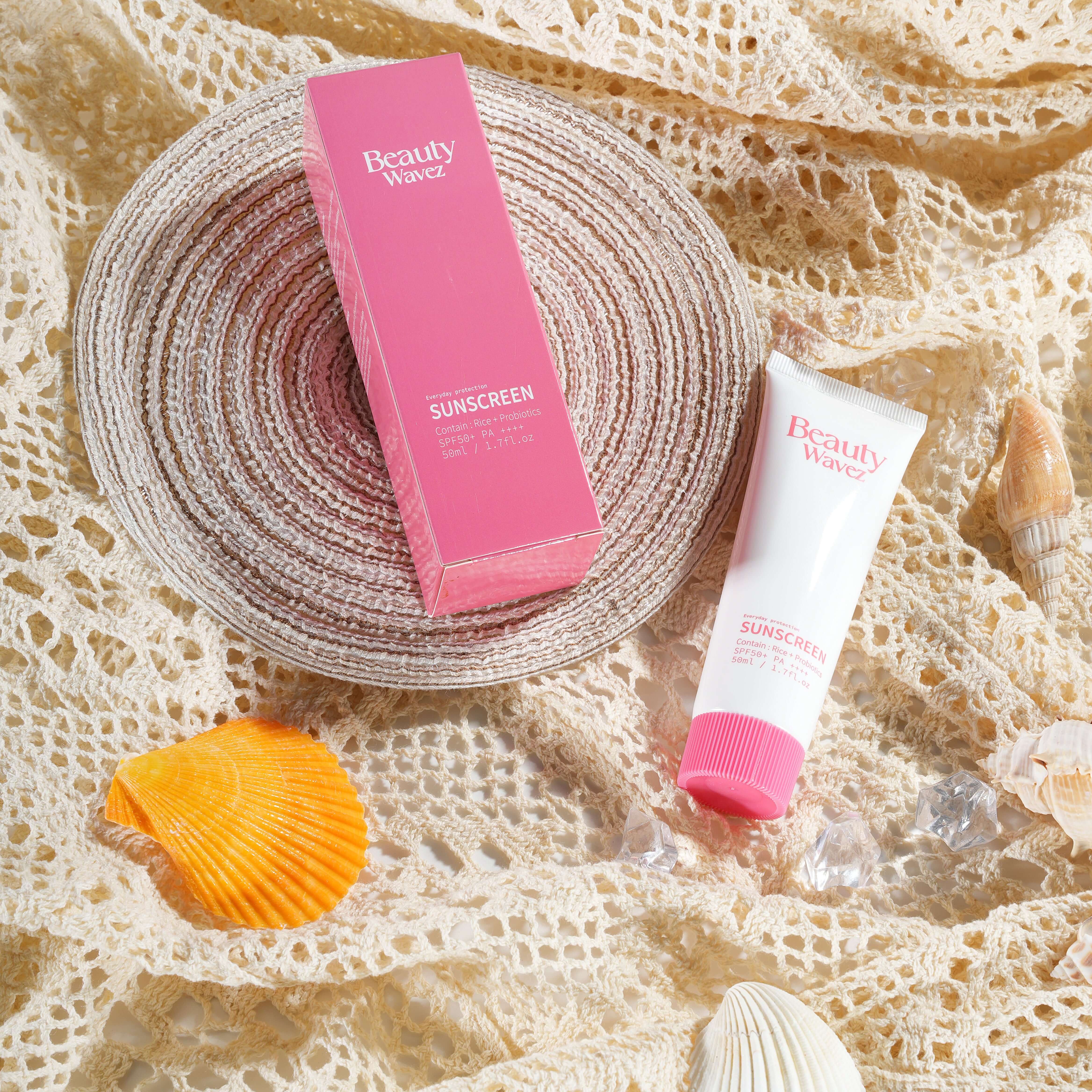 Meet your new go-to sunscreen: the Beauty Wavez Organic Sunscreen SPF 50, a powerful yet gentle formula designed for all skin types. Whether you're heading out for a beach day, a hike, or just your daily errands, this sunscreen has your back (and your face too!).